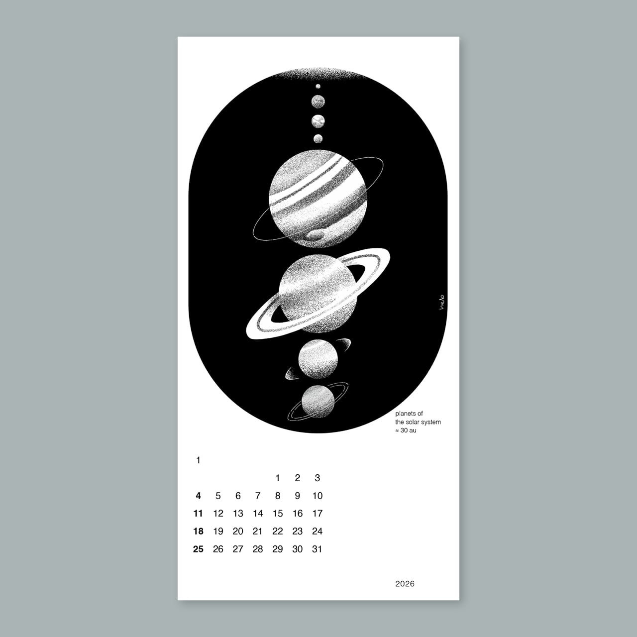 宇宙のさまざまな天体のイラストを描いたカレンダーです。
